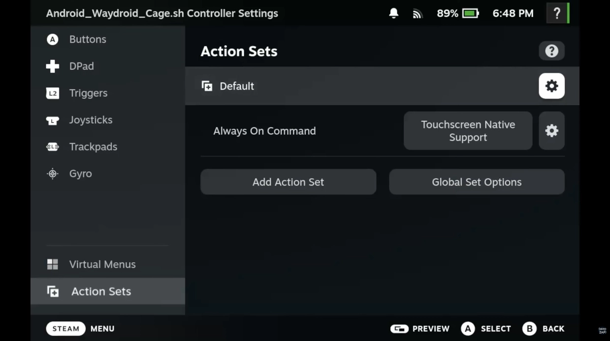 - Select Waydroid in your library and tap the Controller Icon.