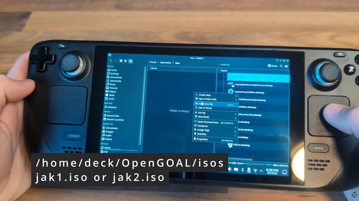 /home/deck/OpenGOAL/isos) - Copy your ISO file into this directory.