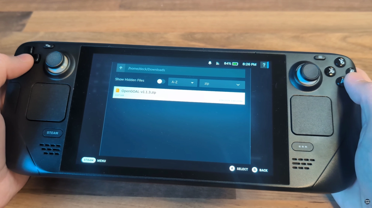 - While still in Desktop Mode, download the plugin zip file from the OpenGOAL website (or GitHub releases).
