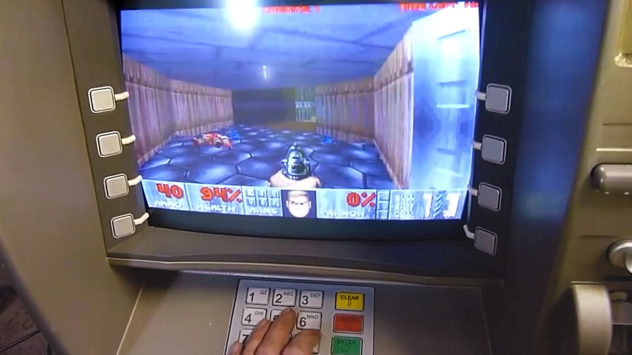 By mapping the classic directional controls and firing mechanics to the PIN pad and screen-side keys, the team created a brilliant arcade cabinet. It is a fantastic example of repurposing commercial hardware to run native, complex software.